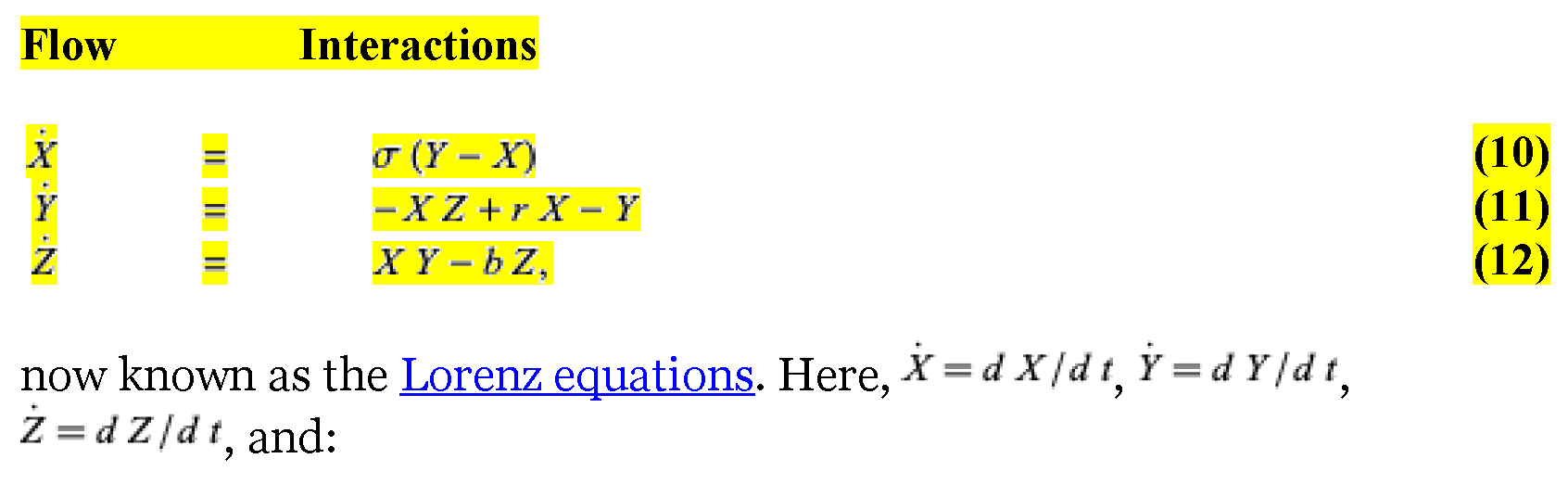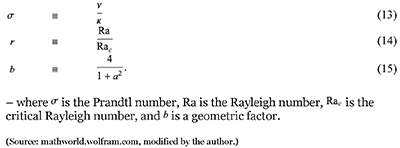 - where X is proportional to convective intensity, Y to the temperature difference between descending and ascending currents, and Z to the difference in vertical temperature profile from linearity in his system of equations. From these, he obtained the simplified equations: