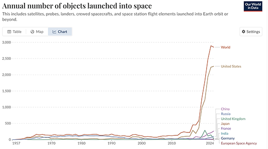 Space: the final frontier. The opening lines of Star Trek sought to inspire a generation, portraying a unified, modern Earth with humans in a coalition with countless other species across the universe. In the magic of this fictional world, there was indeed conflict, but it was interplanetary. Earth was united, and itself an individual member of the United Federation of Planets. Snap back to the reality of our current era, and Earth is far from united. As our space capabilities have advanced, our on-planet conflicts have not faded. The course of modern space technology is, in fact, deeply intertwined with our "domestic" wars (and those that may lie ahead). Space, and particularly low Earth orbit (LEO), are critical to the warfighting capabilities of the world's most advanced militaries, and more so with each passing year. This is particularly the case for the United States. The US government has spent the last 20 years perfecting satellite capabilities in space to the extent that they now allow for constant surveillance of the battlefield, down to a remarkable level of resolution, measured in centimeters. Meanwhile, communications are increasingly dependent on satellites, as the era of small, affordable satellite technology has heralded an explosion in the number and speed of deployment of entire constellations. Here, the US remains dominant in the extreme, with more launches by far than the rest of the world combined, and climbing.