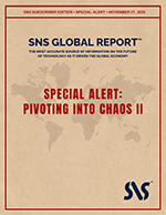 Copyright 2025 Strategic News Service. Redistribution prohibited without written permission. DISCLAIMER: NOT INVESTMENT ADVICE Information and material presented in the SNS Global Report should not be construed as legal, tax, investment, financial, or other advice. Nothing contained in this publication constitutes a solicitation, recommendation, endorsement, or offer by Strategic News Service or any third-party service provider to buy or sell any securities or other financial instruments. This publication is not intended to be a solicitation, offering, or recommendation of any security, commodity, derivative, investment management service, or advisory service and is not commodity trading advice. Strategic News Service does not represent that the securities, products, or services discussed in this publication are suitable or appropriate for any or all investors. We encourage you to forward your favorite issues of SNS to a friend(s) or colleague(s) 1 time per recipient, provided that you cc info@strategicnewsservice.com and that sharing does not result in the publication of the SNS Global Report or its contents in any form except as provided in the SNS Terms of Service (linked below). To arrange for a speech or consultation by Mark Anderson on subjects in technology and economics, or to schedule a strategic review of your company, email mark@stratnews.com. For inquiries about Partnership or Sponsorship Opportunities and/or SNS Events, please contact Berit Anderson, SNS COO, at berit@stratnews.com.