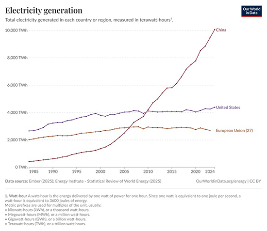 The long-term construction of this export machine in manufactured goods is perhaps best portrayed by electricity production, starting at the same time, creating the foundation for this attack. Unfortunately, its targets - including the US - were completely unprepared for the intended onslaught of half-price competitive goods on the global market. We know this because we briefed their targets' top intelligence-community and political leaders. One US Fed executive was so naive as to recently call this China's "production over-supply problem." Almost all this buildout was funded by the theft of intellectual property (inventions) from the West: US Monthly Imports of Goods from Three Major Trading Partners